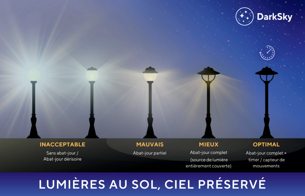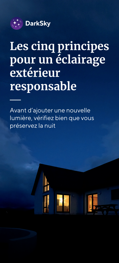 Brochure Feuillets d’information Carte postale Liste de vérification Lien vers l’ensemble des ressources de DarkSky International (anglais)Lien vers les Règlements généraux de DarkSky Québec (mars 2026)